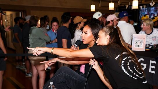 The lines to enter Homebound Brew Haus at Union Station were out the door as fans anxiously tried to see Ertz and Thompson. There, Angel City forward Sydney Leroux and Ally Kendricks hosted a watch-along for Bleacher Report at the Union Station watch party with fans in the backdrop. Among others, Los Angeles Chargers safety Eric Kendricks attended the watch party, too.
