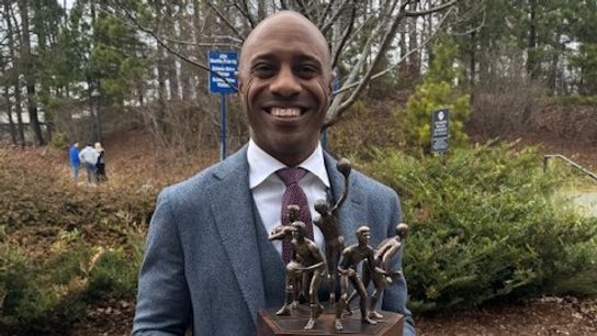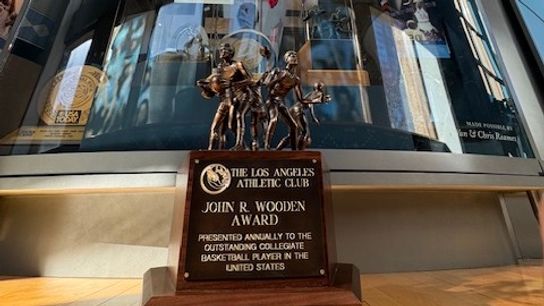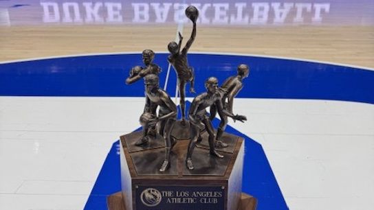 The John R. Wooden Award traveled from the Los Angeles Athletic Club and arrived in Durham last Friday for a weekend full of exciting events leading up to the big Duke-North Carolina game at Cameron Indoor Stadium.