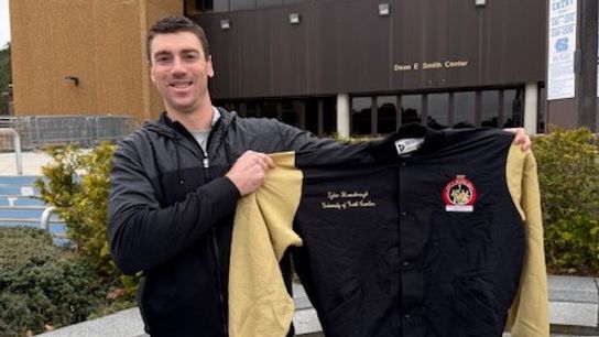 On Saturday morning, the Wooden Award made a stop at the Carolina Museum to take photos with past winner trophies, including John R. Wooden Award recipient Coach Dean Smith, who received the John R. Wooden Legends of Coaching Award in 1999. Past winners Phil Ford (1978), Michael Jordan (1984), Tyler Hansbrough (2008), and Coach Dean Smith were featured.